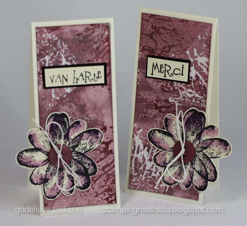 Alleen deze kadolabels vandaag. Ik gebruikte de overschot van de gestempelde achtergrond van deze kaart (klik). De bloem is van Hero Arts, ingekleurd met een potlood.